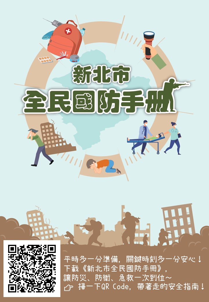 下載《新北市全民國防手冊》, 讓防災、防衛、急救一次到位~